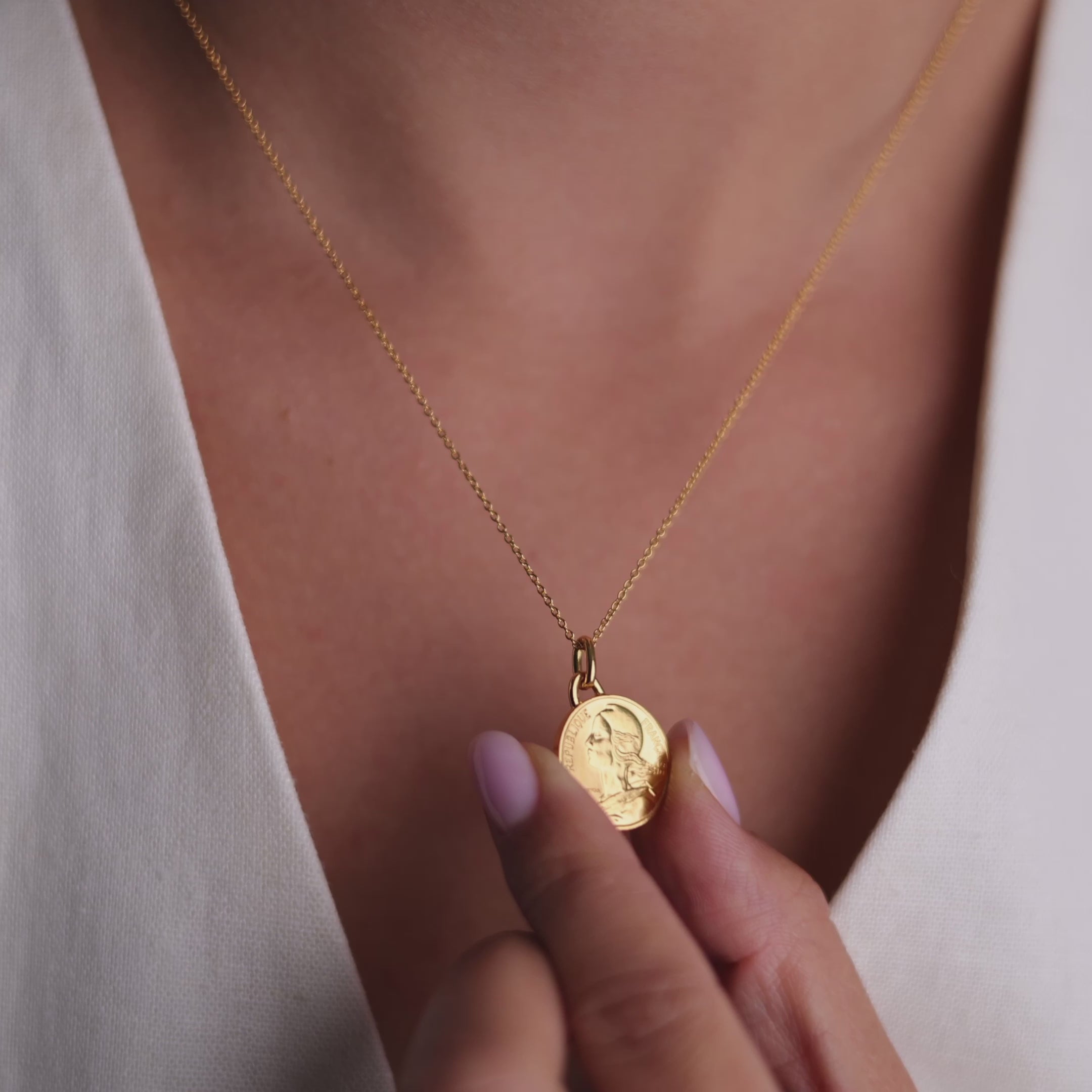 Collier pièce de monnaie française | Pendentif médaillon | Plaqué or 18 carats 5 centimes | 1966-2001
