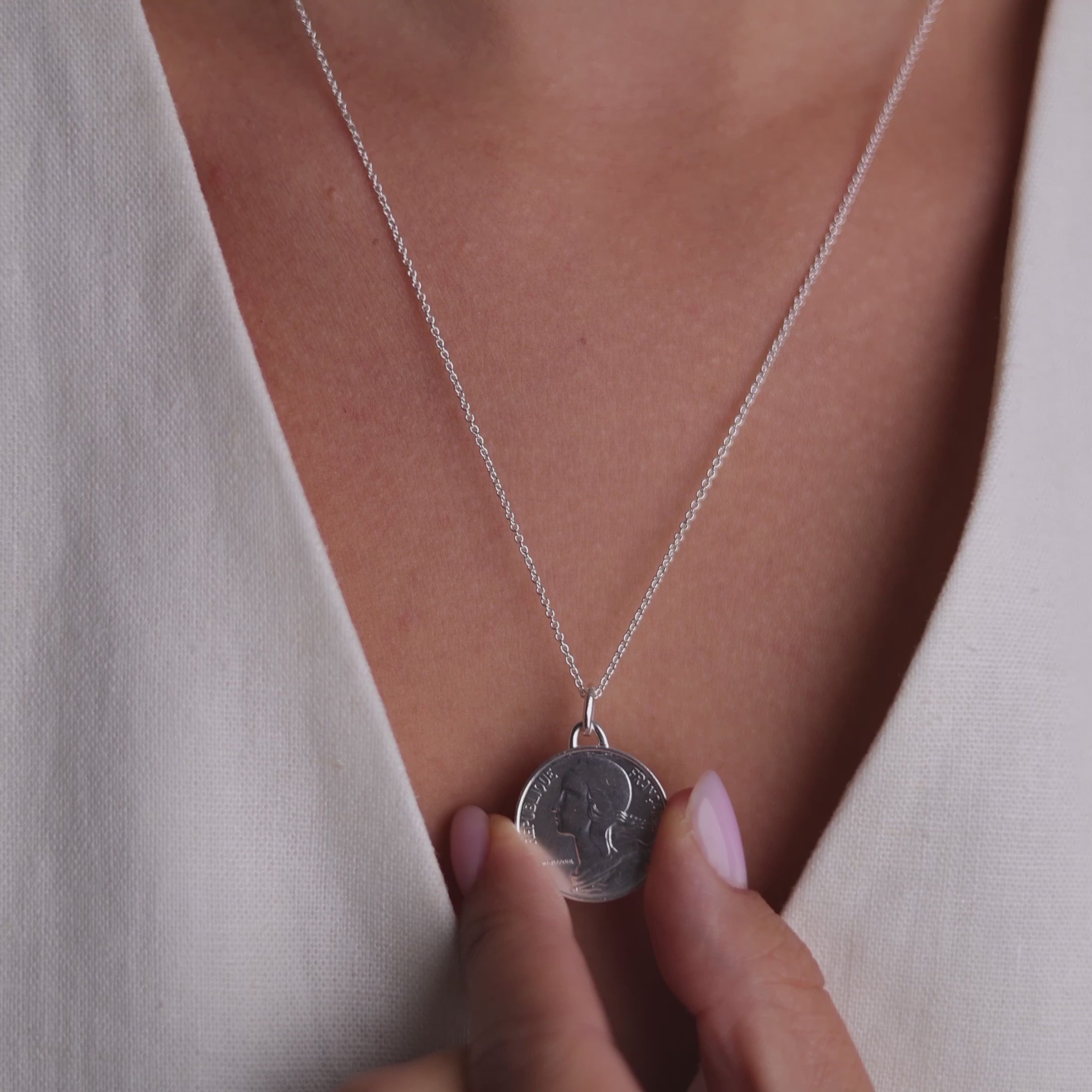 Collier pièce de monnaie française | Pendentif médaillon | Plaqué rhodium 10 centimes | 1966 - 2001