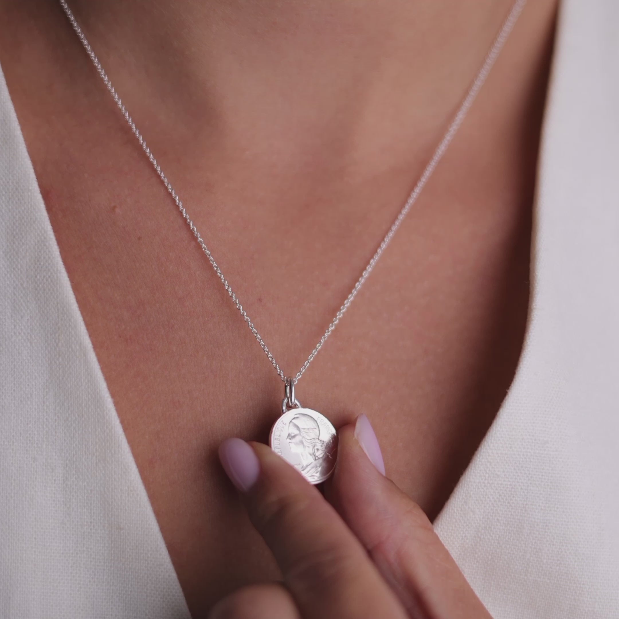 Collier pièce de monnaie française | Pendentif médaillon | Plaqué rhodium 5 centimes | 1966 - 2001