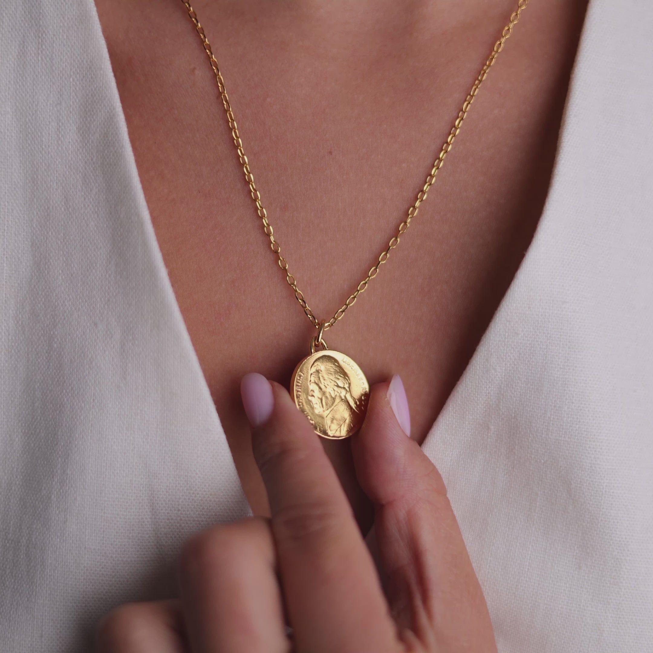 Cette pièce en édition limitée est réalisée à partir d'une pièce de monnaie ayant circulé, chaque rayure et chaque marque conservant une trace de son passage dans le temps, conférant à chaque médaillon une authenticité unique. Chaque pièce porte une année différente, reflétant ainsi son histoire propre.